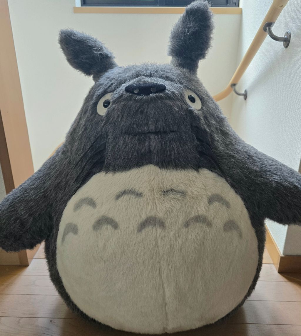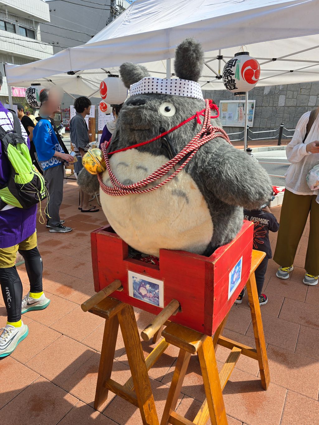 三鷹市にジブリ美術館ができたときから三鷹台の商店街にあり、子ども用神輿として活躍してきたトトロのぬいぐるみ。 かなり汚れていたので「洗わせてください」と申し出たらご快諾いただきました。ぬいつぎとしての初仕事はトトロの清掃になりました。